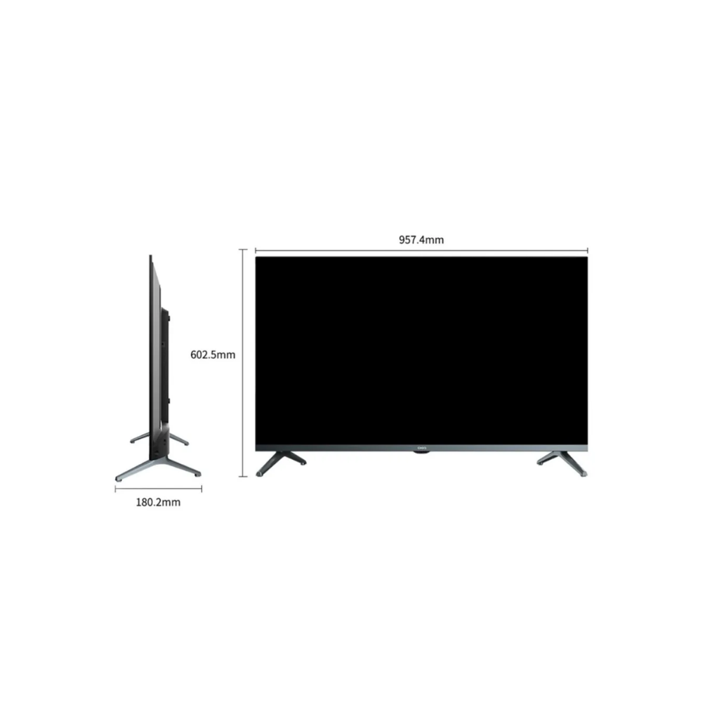 • 43-inch LED Panel with Full HD (FHD) resolution. • Powered by Android 11 Smart TV operating system. • Features a modern Full Screen / Frameless aesthetic. • **Warranty:** 2 years warranty for General Parts and Labour.