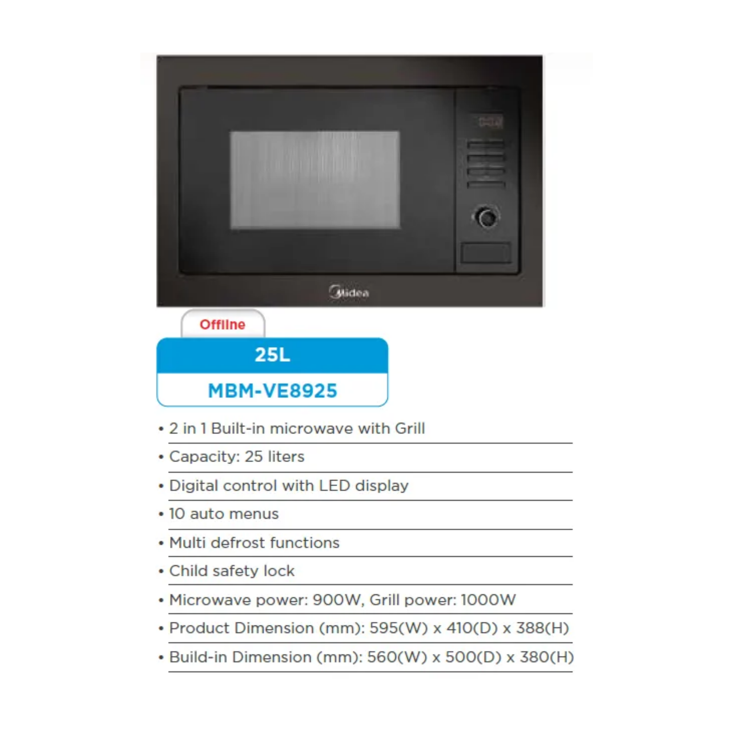 Midea 25L Built-In Microwave Oven 900W MBM-VE8925