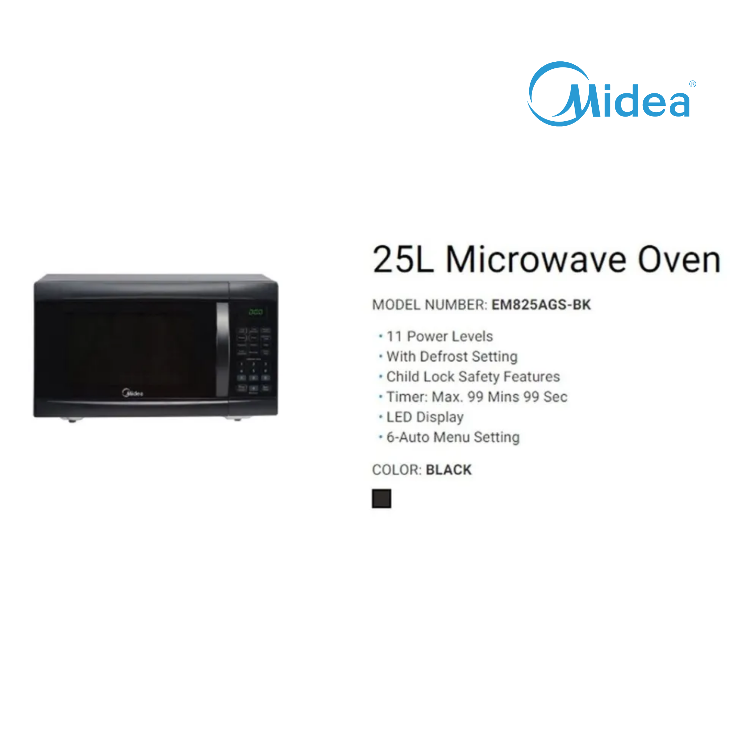 Midea 25L Microwave Oven 700~800W EM825AGS-BK