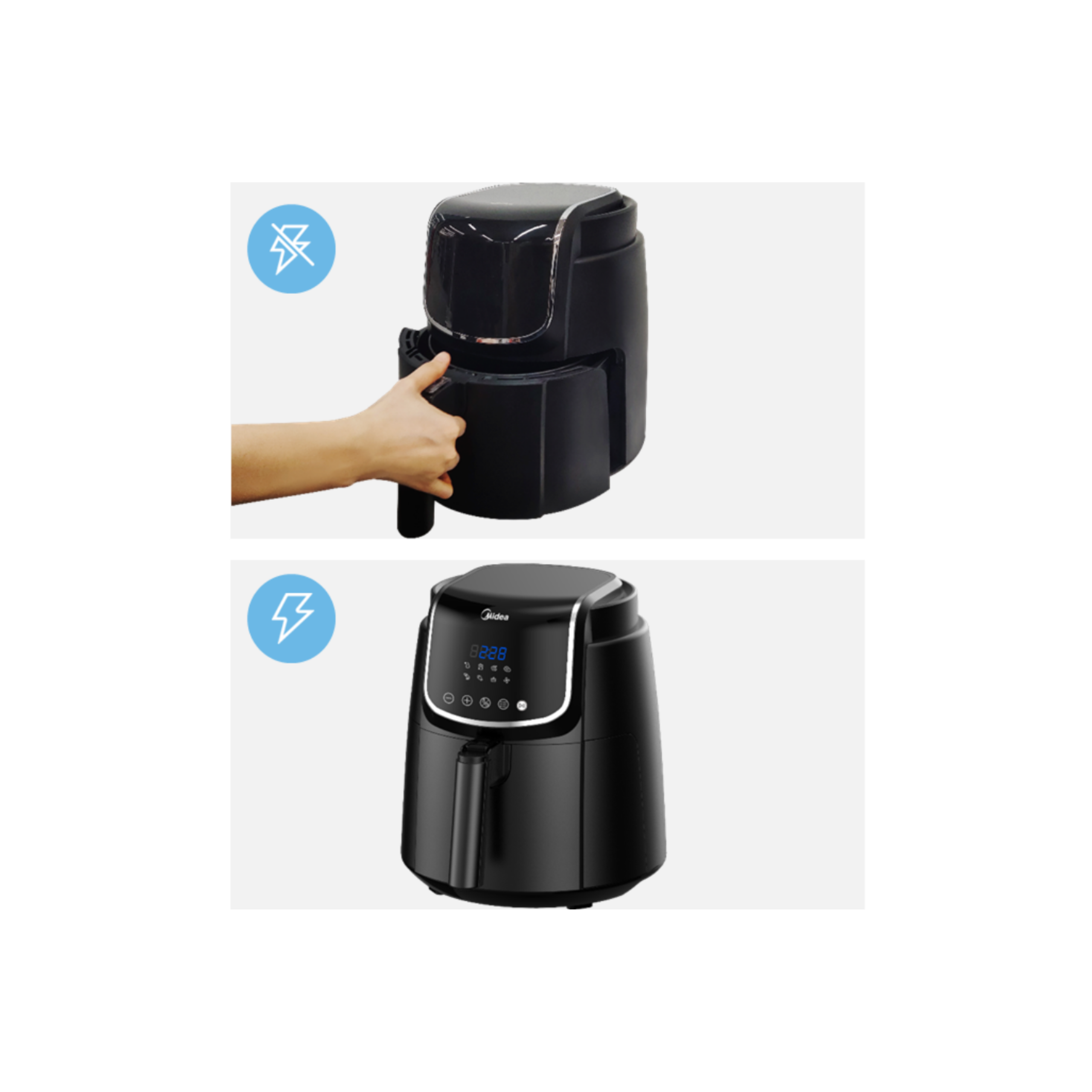 • Capacity: 4.0L • Power: 1500W • DualCyclone Rapid Air Technology • All-around Metallic Interior • Auto Heat-Off • Safe Non-Stick Material