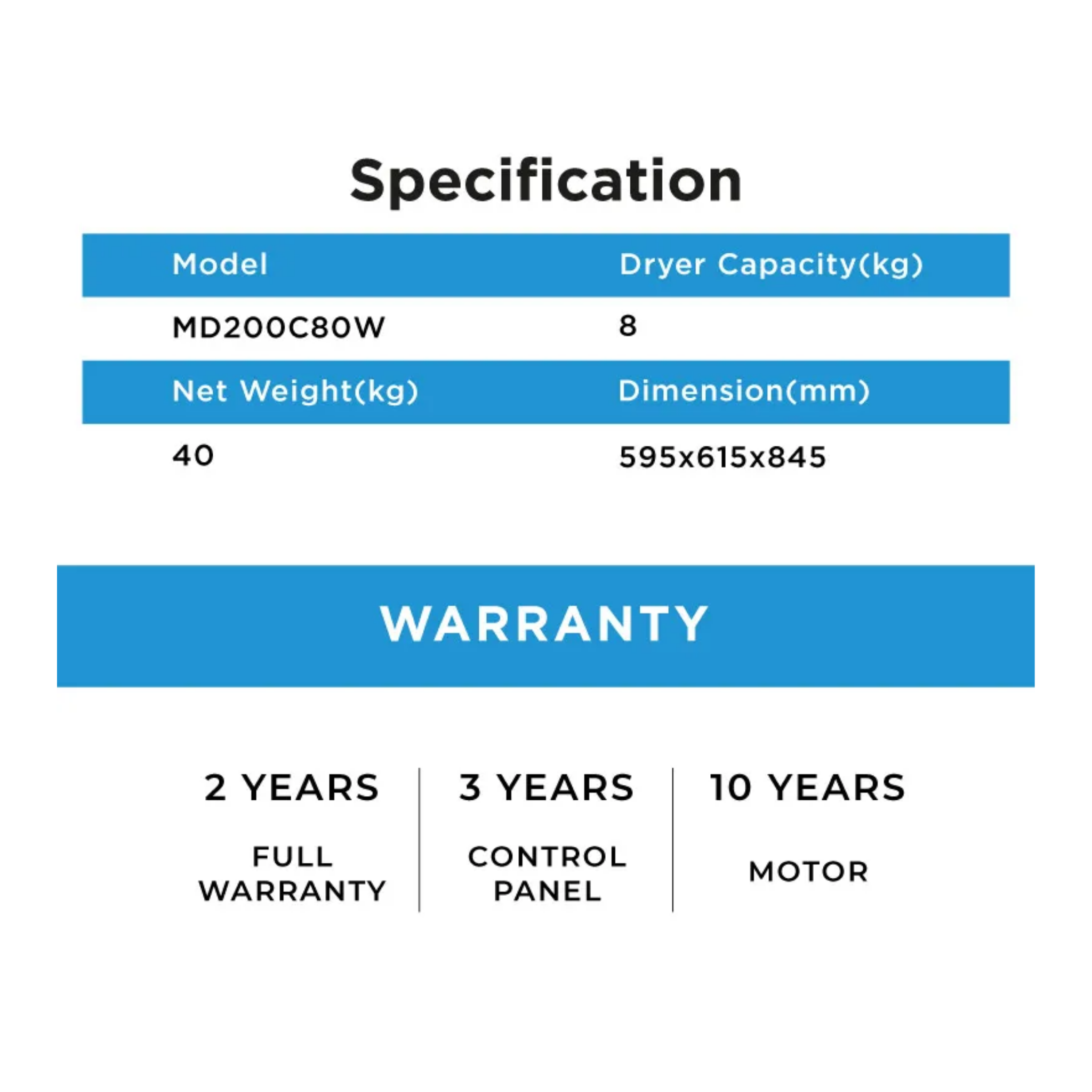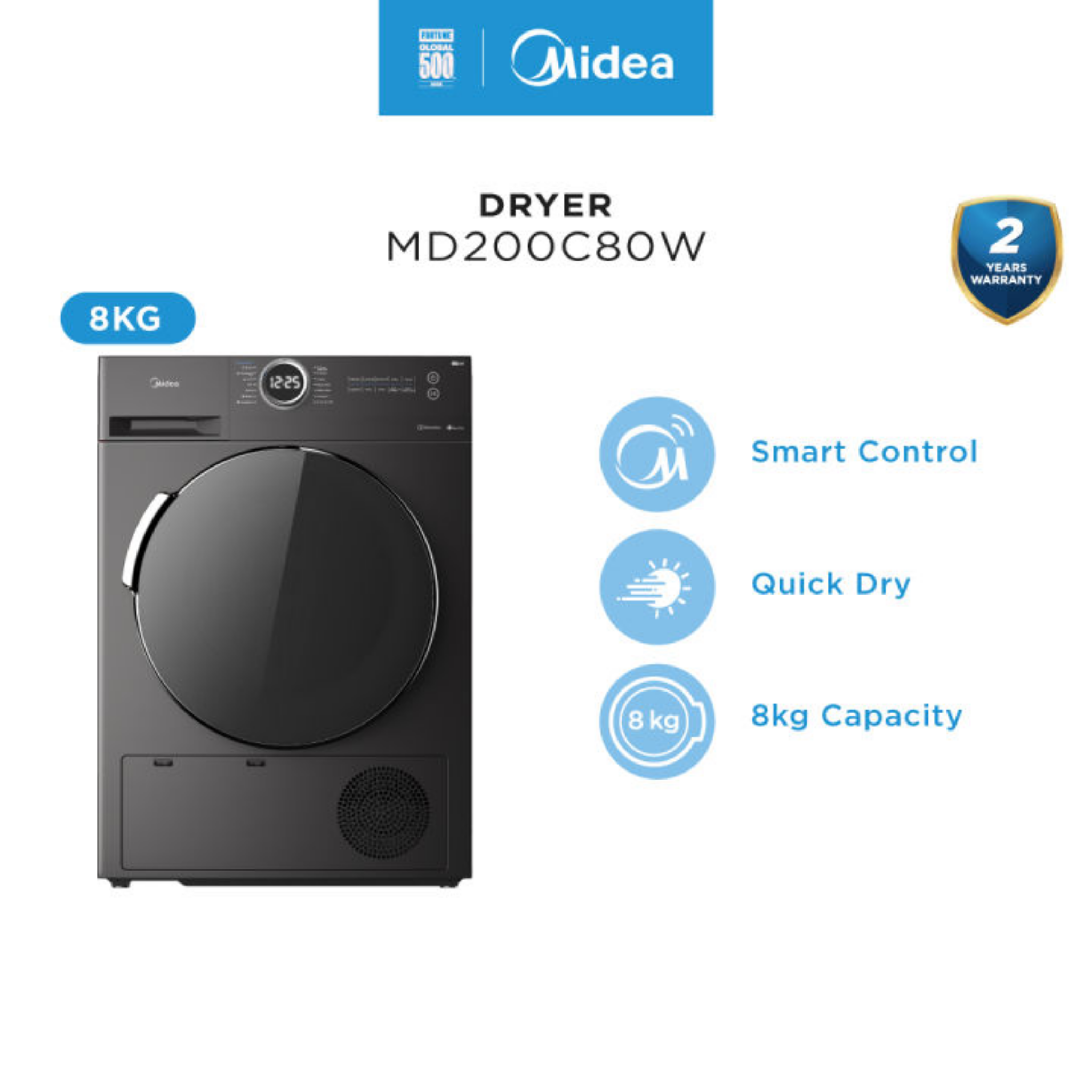 Midea 8.0Kg Condenser Dryer (Black) MD200C80W