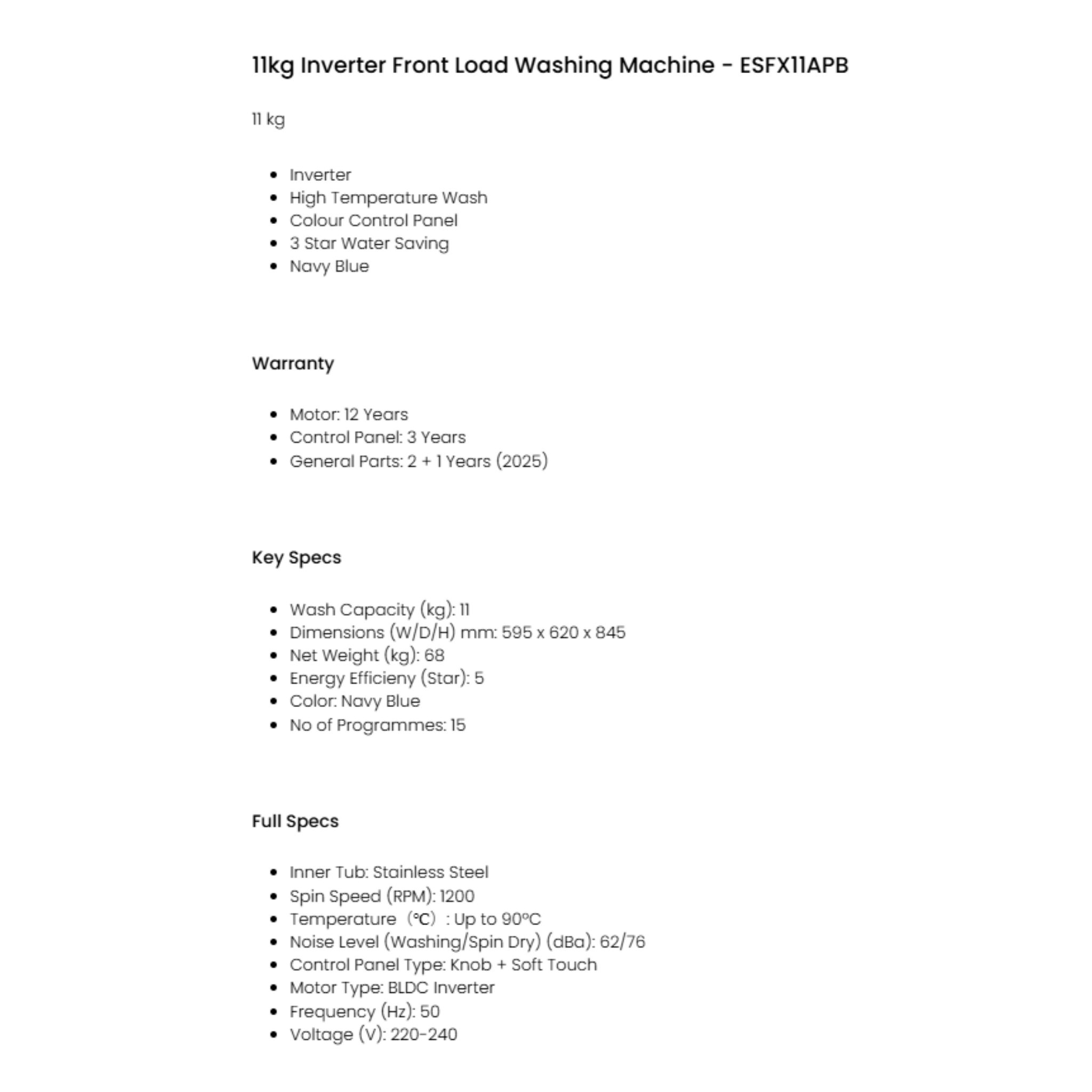 Sharp 11kg/7kg Pro-Flex Washer Dryer Combo (ESDX11APB)