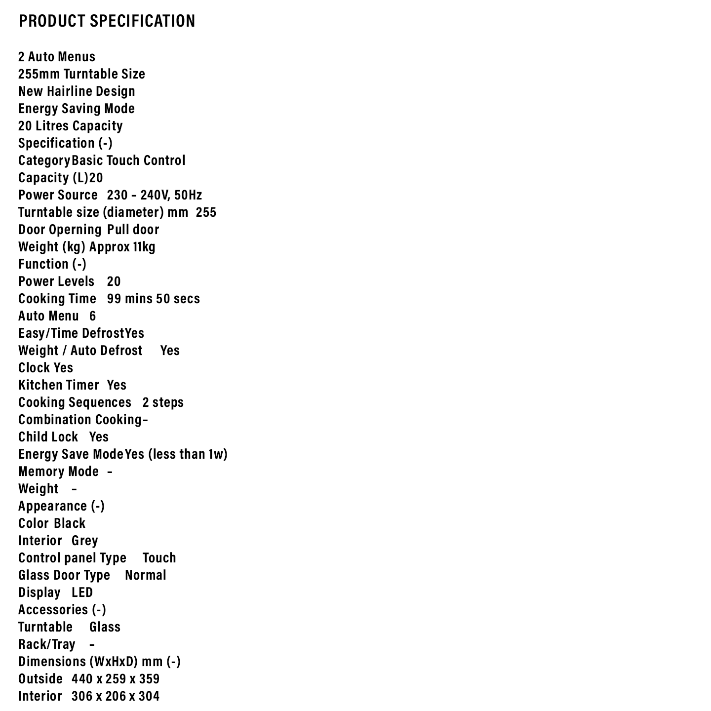 Sharp 20L Touch Microwave R207EK. Convenient one-touch cooking. Digital display and precise timer. Compact and stylish. Order online today.