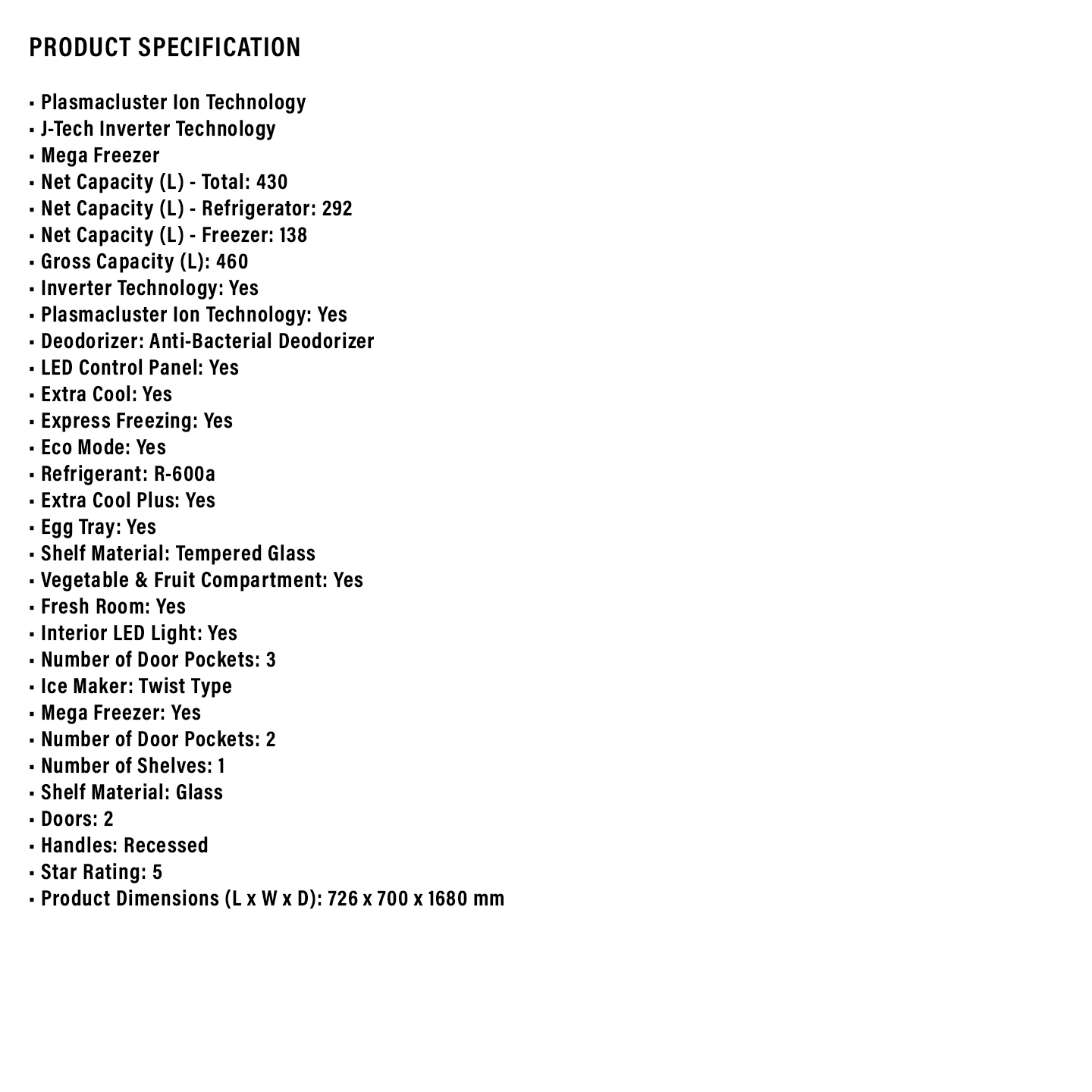 Sharp 460L Fridge SJ5022MDS. Perfect for medium families. High energy efficiency. Durable shelving. Order online for reliable home cooling.
