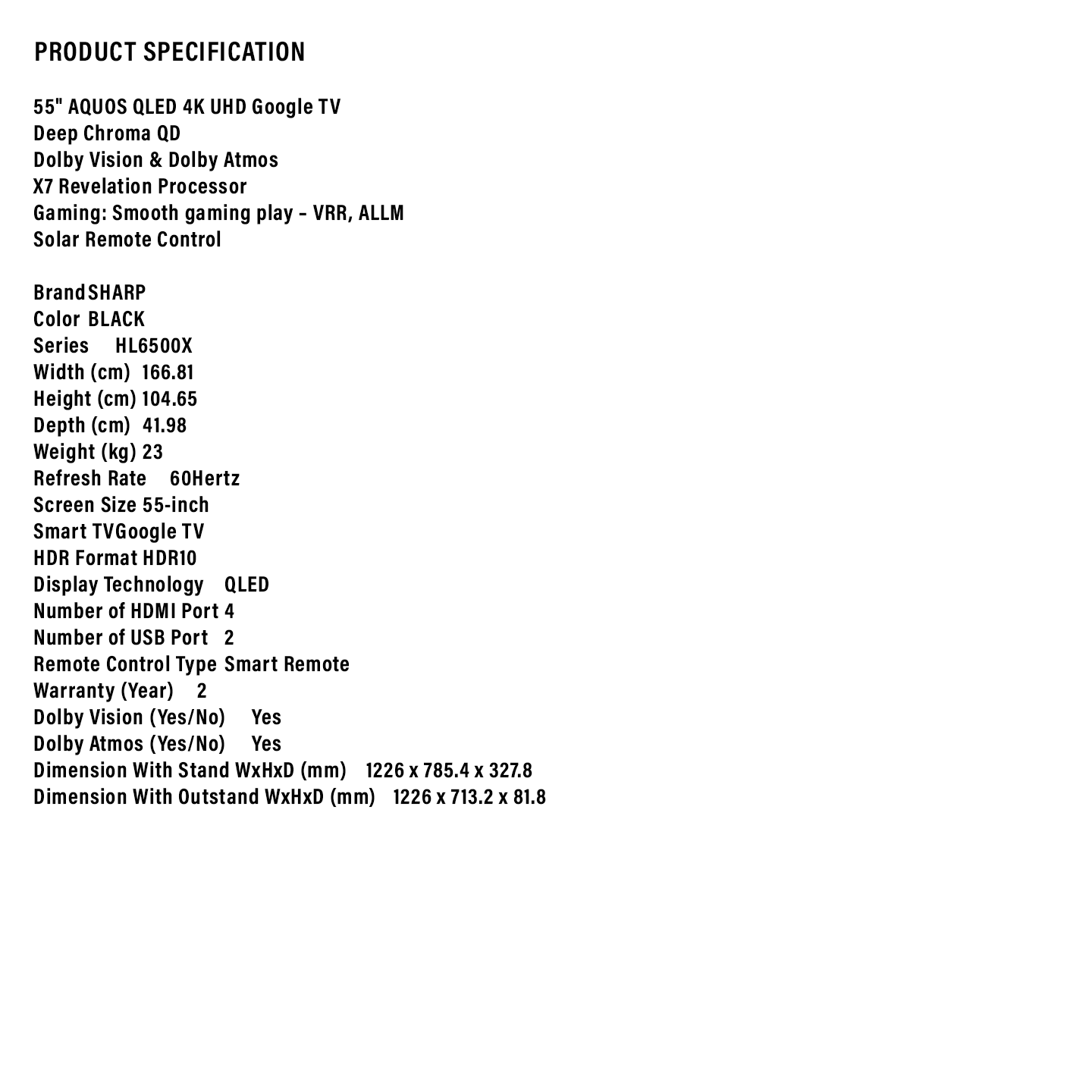 Sharp 55" 4K QLED Google TV 4TC55HL6500X. Vibrant QLED 4K visuals. Smart Google TV OS. Sleek modern look. Shop online for fast delivery.