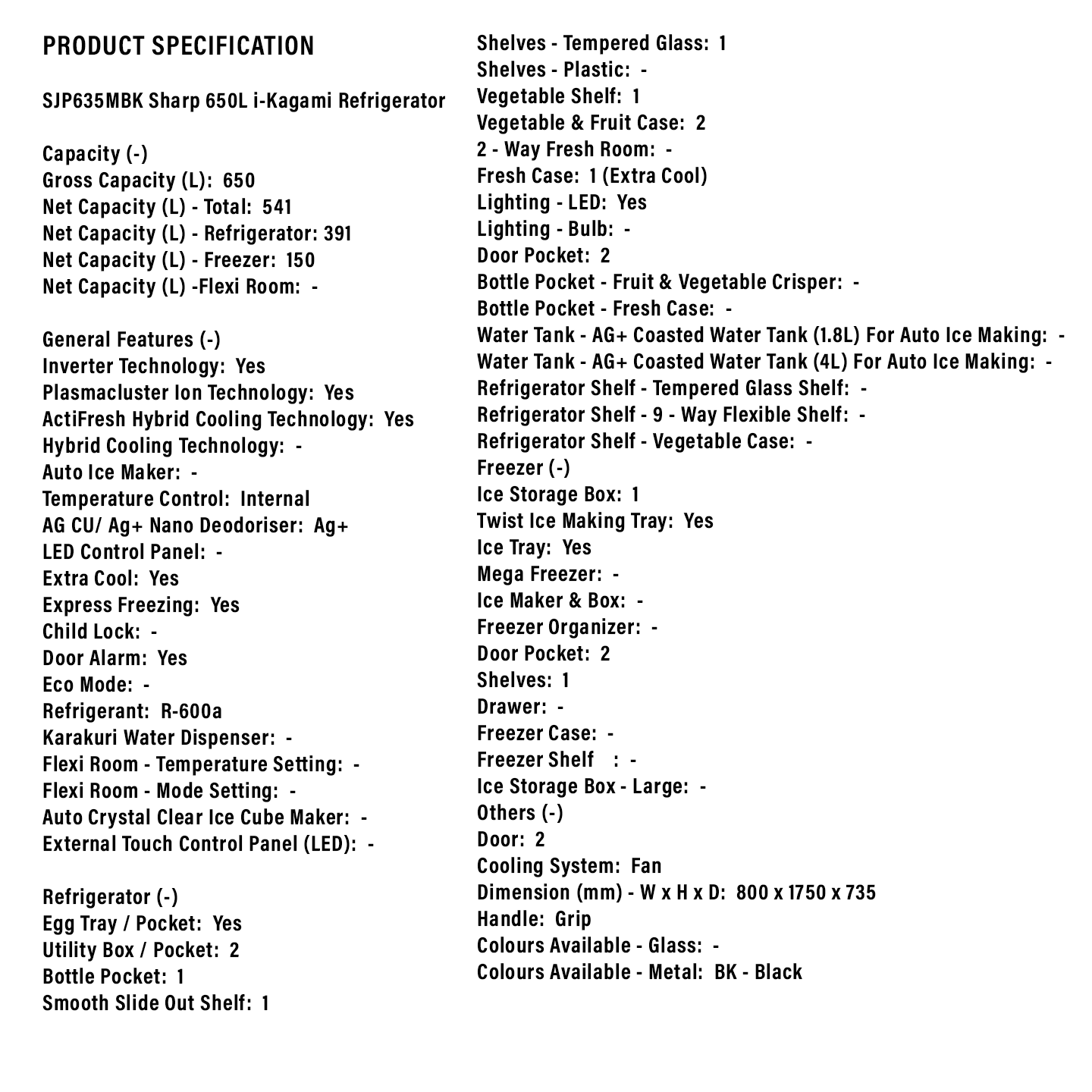 Sharp 650L Fridge SJP635MBK. Smart cooling and elegant mirror design. Inverter energy savings. Large interior. Buy now for home delivery.