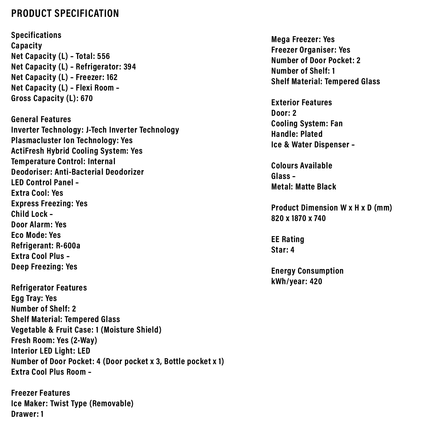 Sharp 670L Fridge SJP701MFMK. Superior cooling for fresh food. Pelican huge freezer capacity. Energy saving. Buy online for a better kitchen now.