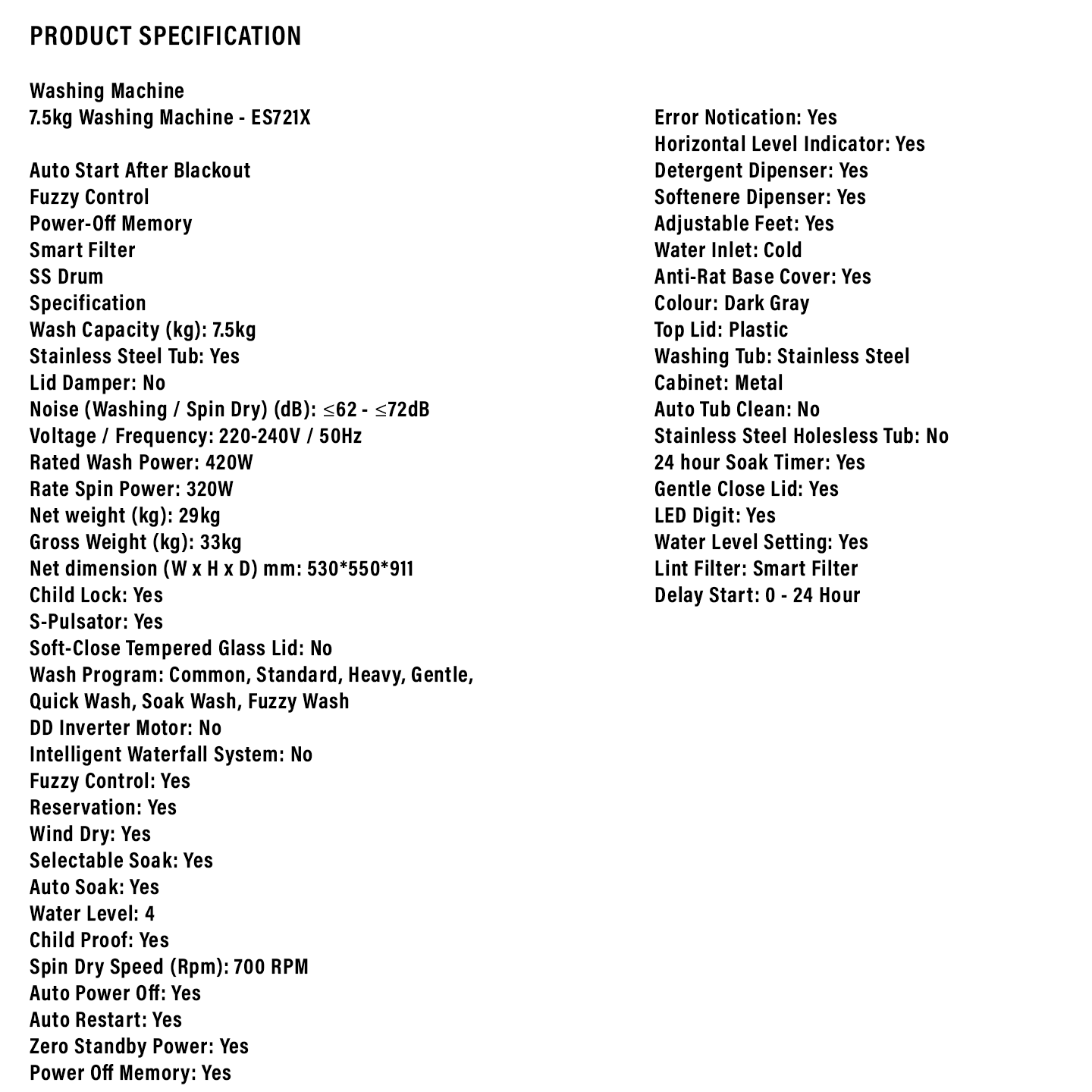 Sharp 7.5kg Washer ES721X. Reliable and compact washing. High-speed drying spin. Durable construction. Order online for fast shipping today.