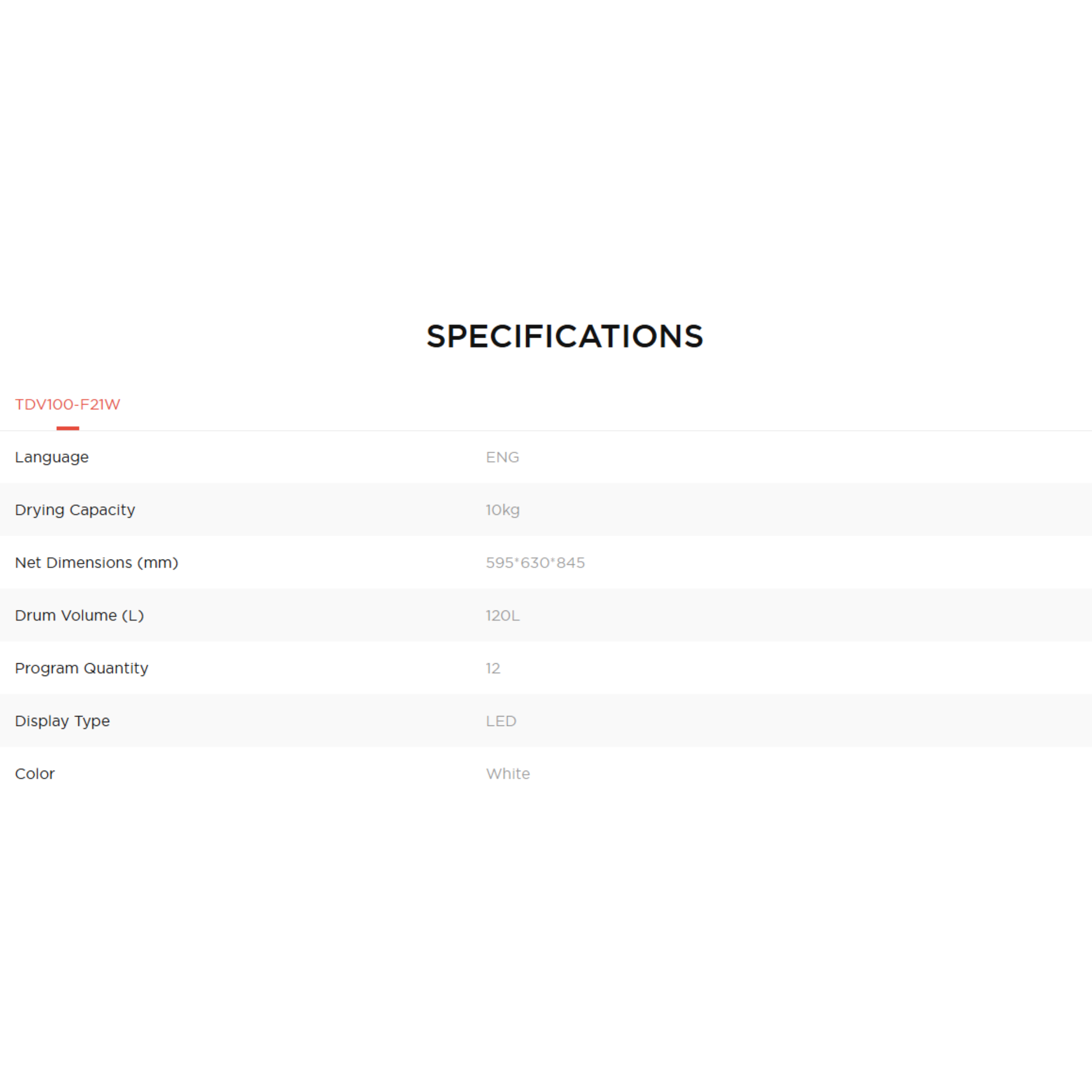 TCL 10.0Kg Vented Dryer TDV100-F21W