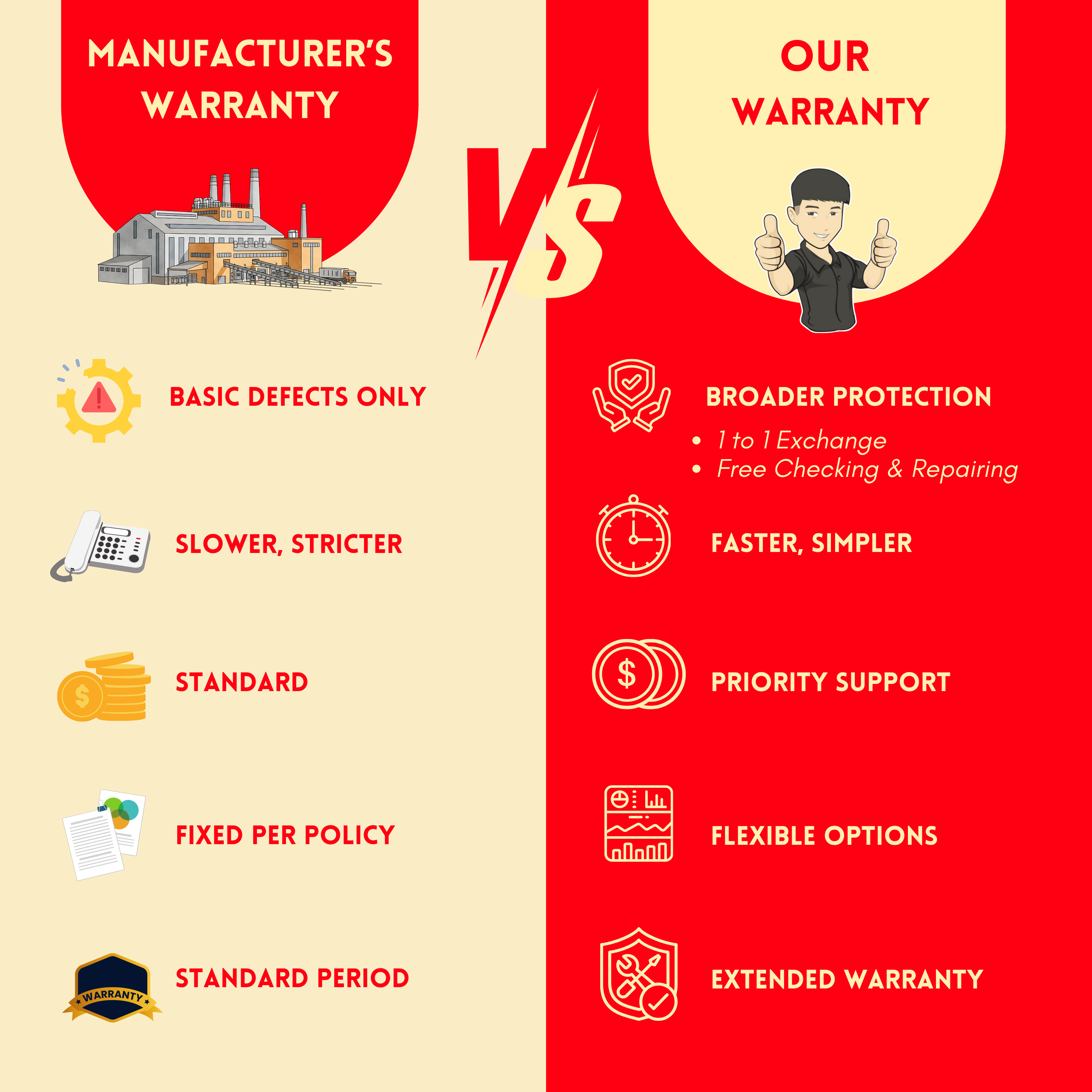 • Warranty: 2 Years General Warranty + 3 Years Special Limited Warranty for Control Panel* + 10 Years Special Limited Warranty for Motor