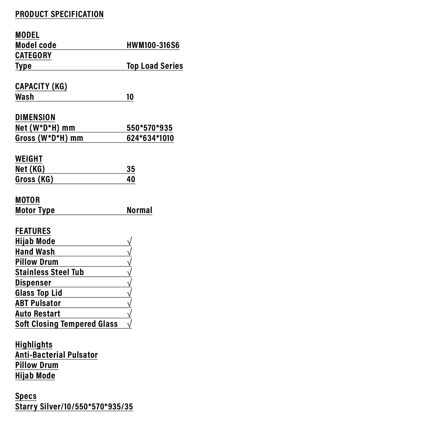 Haier 10kg Top Load Washing Machine (HWM100-316S6)