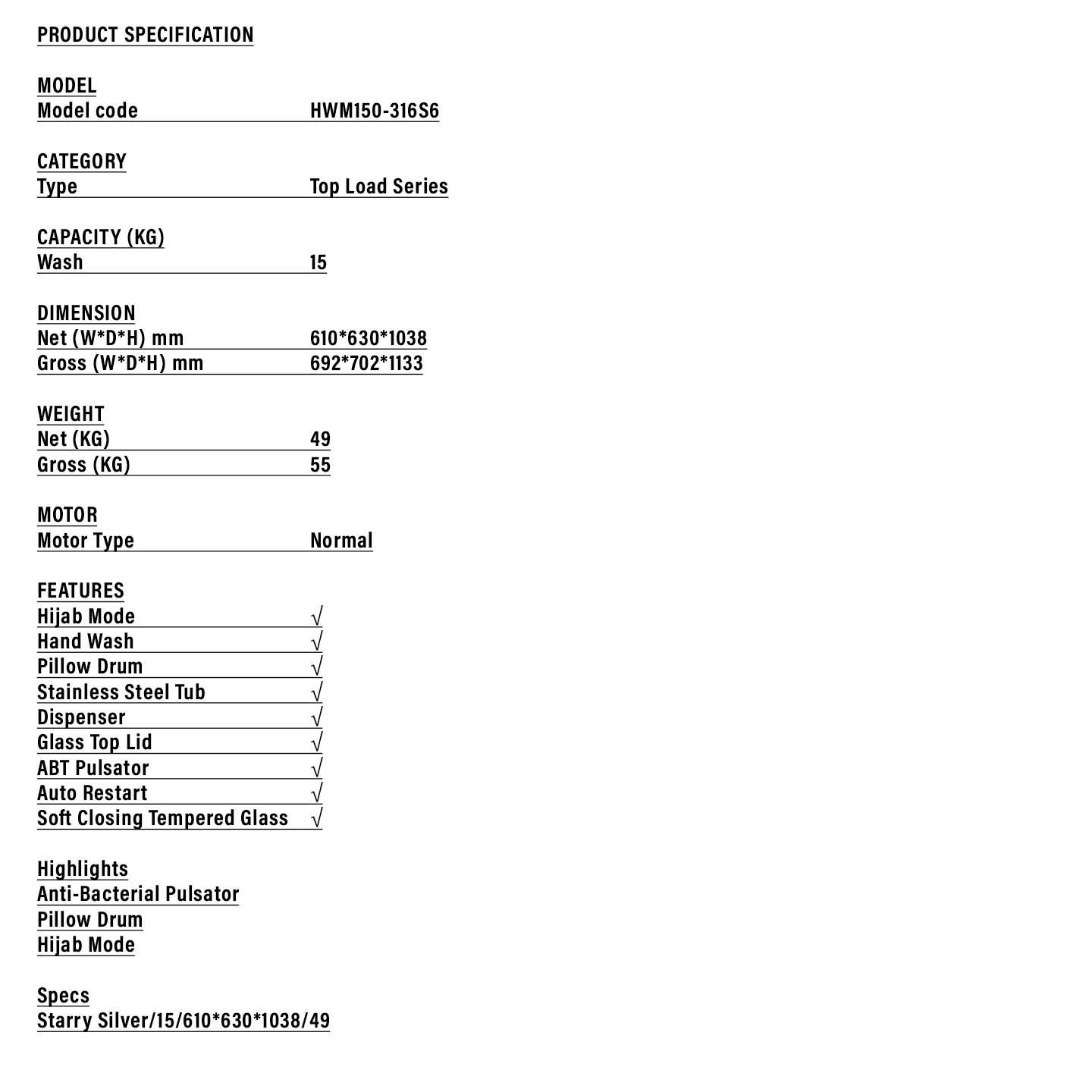 Buy Haier 15kg Top Load Washer (HWM150-316S6). Features soft close lid & pillow drum. 2 Years General + 3 Years PCB + 12 Years Motor Warranty. Shop now.