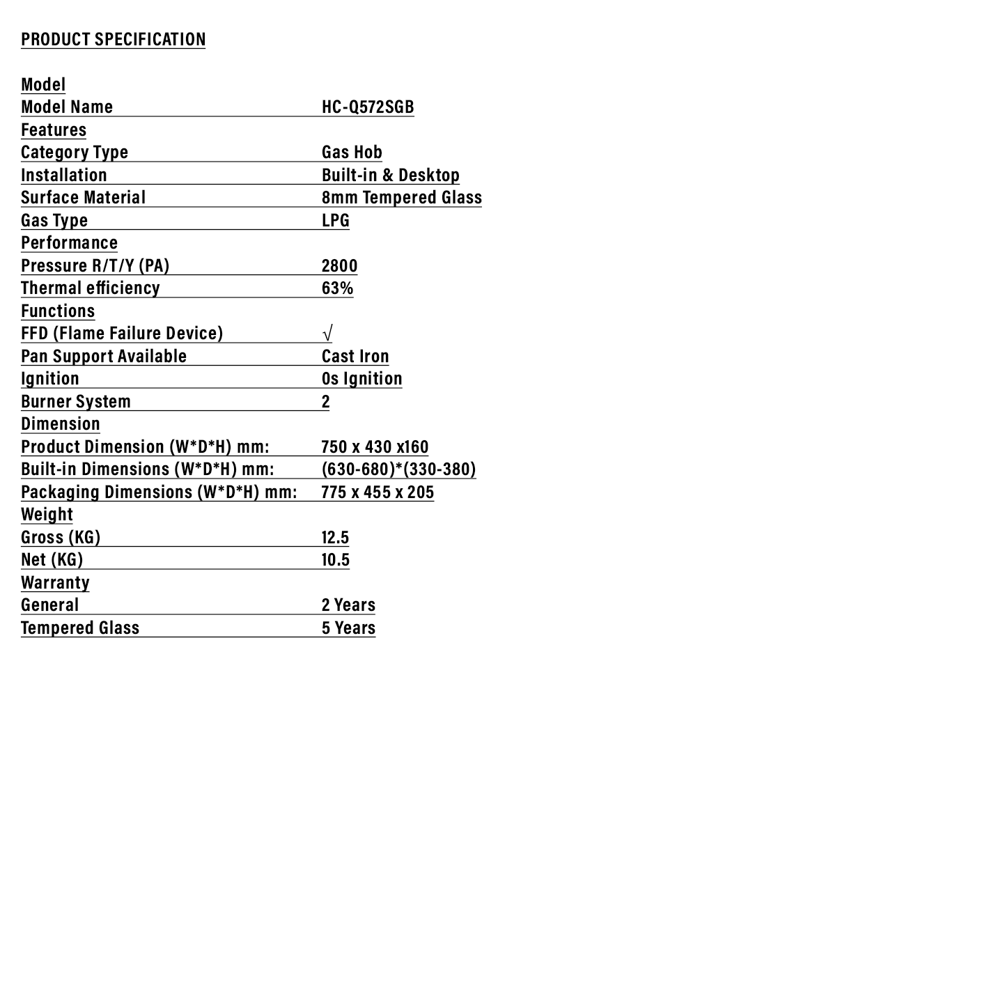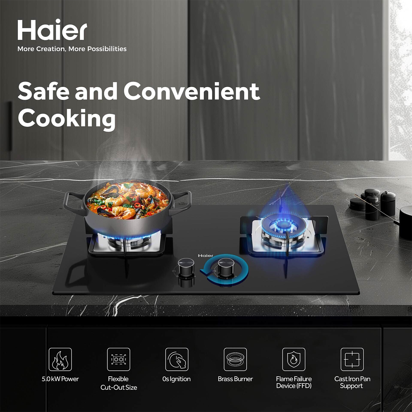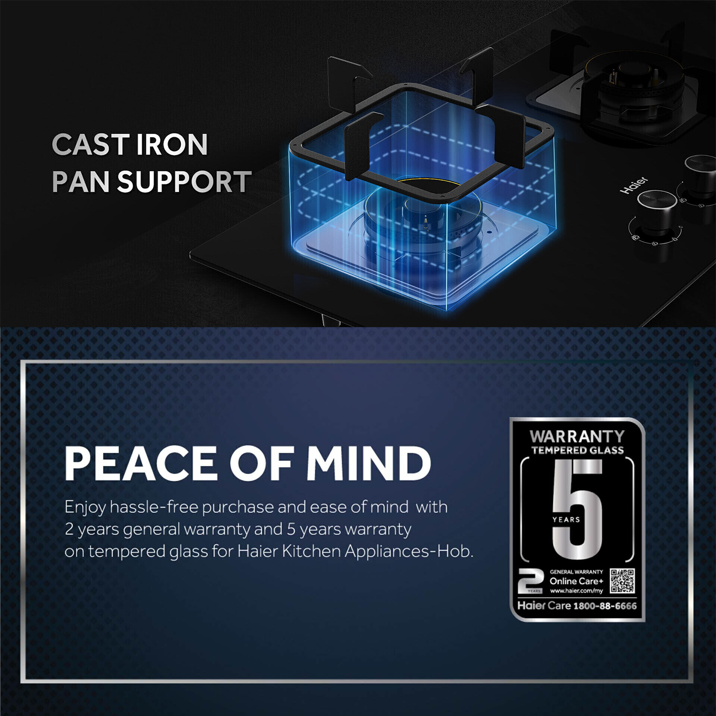 Buy Haier 2-Burner Hob (HC-Q572SGB). Features 5.0kW power & durable cast iron stand. 2 Years General + 5 Years Glass Warranty. Shop now.