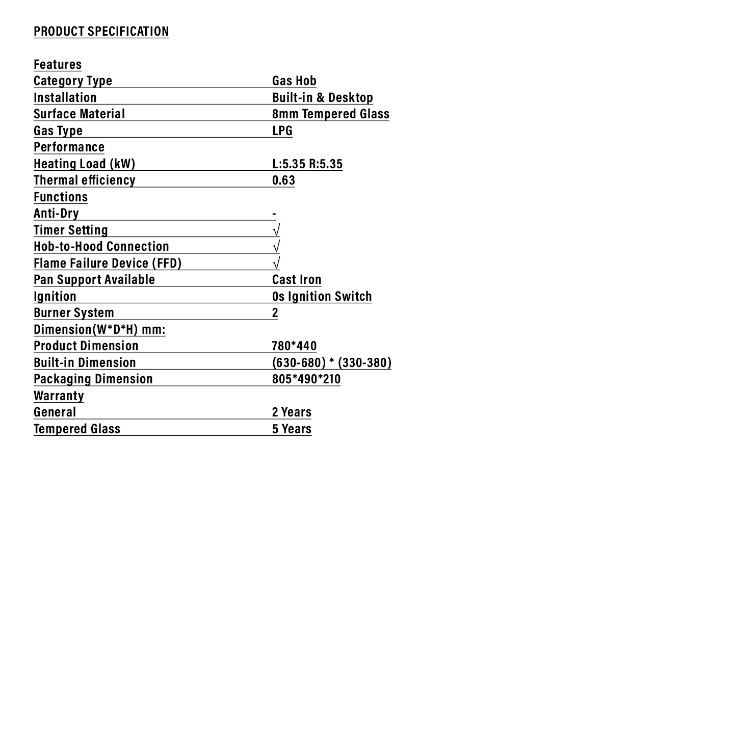 Haier 2-Burner Built-in Gas Hob with Timer (HC-Q68266BT)