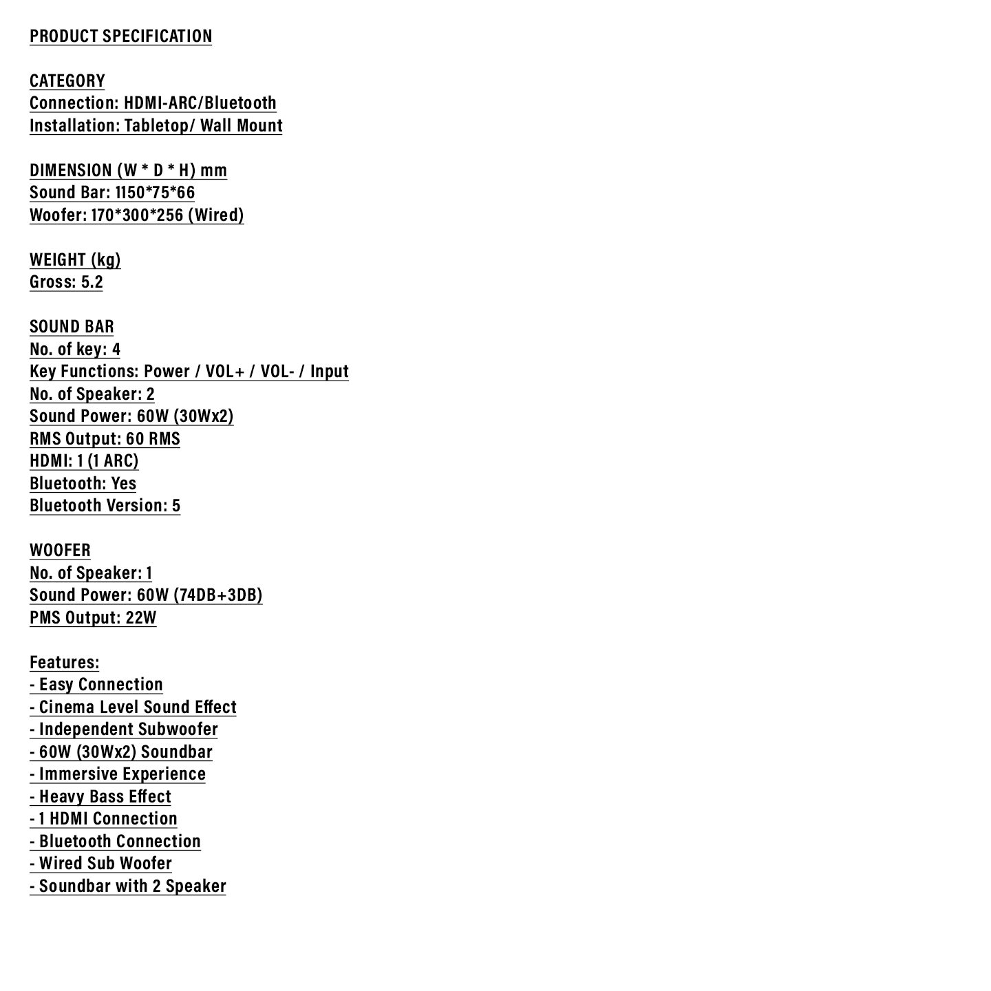 Haier 2.1ch Detachable Soundbar with Wireless Subwoofer (HSD3A040B)