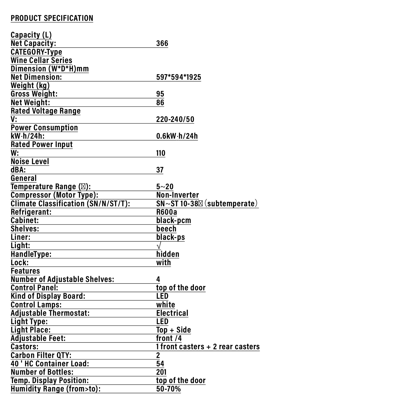 Haier 201 Bottles Wine Chiller (HWS-201GD)