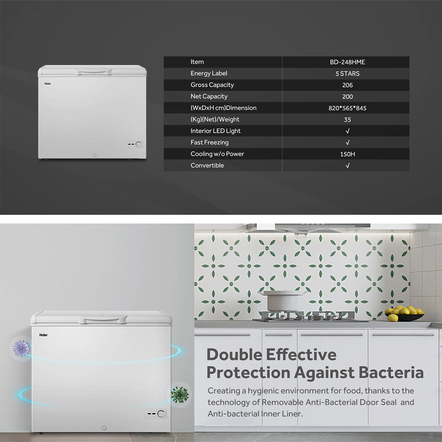 Buy Haier 232L Chest Freezer (BD-248HME). Features compact storage & sturdy build. 2 Years General + 5 Years Compressor Warranty. Shop now.
