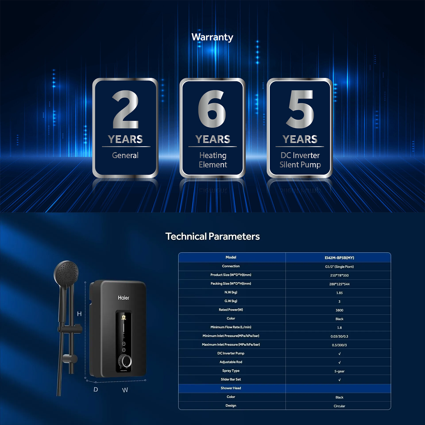 Haier 3.8kW DC Pump Water Heater Black (EI38M-BP3B)