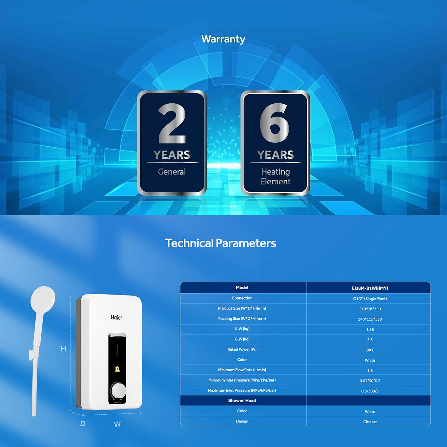 Buy Haier 3.8kW DC Pump Heater (EI38M-B1WB) Black. Features quiet DC pump & ELCB safety. 2 Years General + 5 Years Pump Warranty. Shop now.