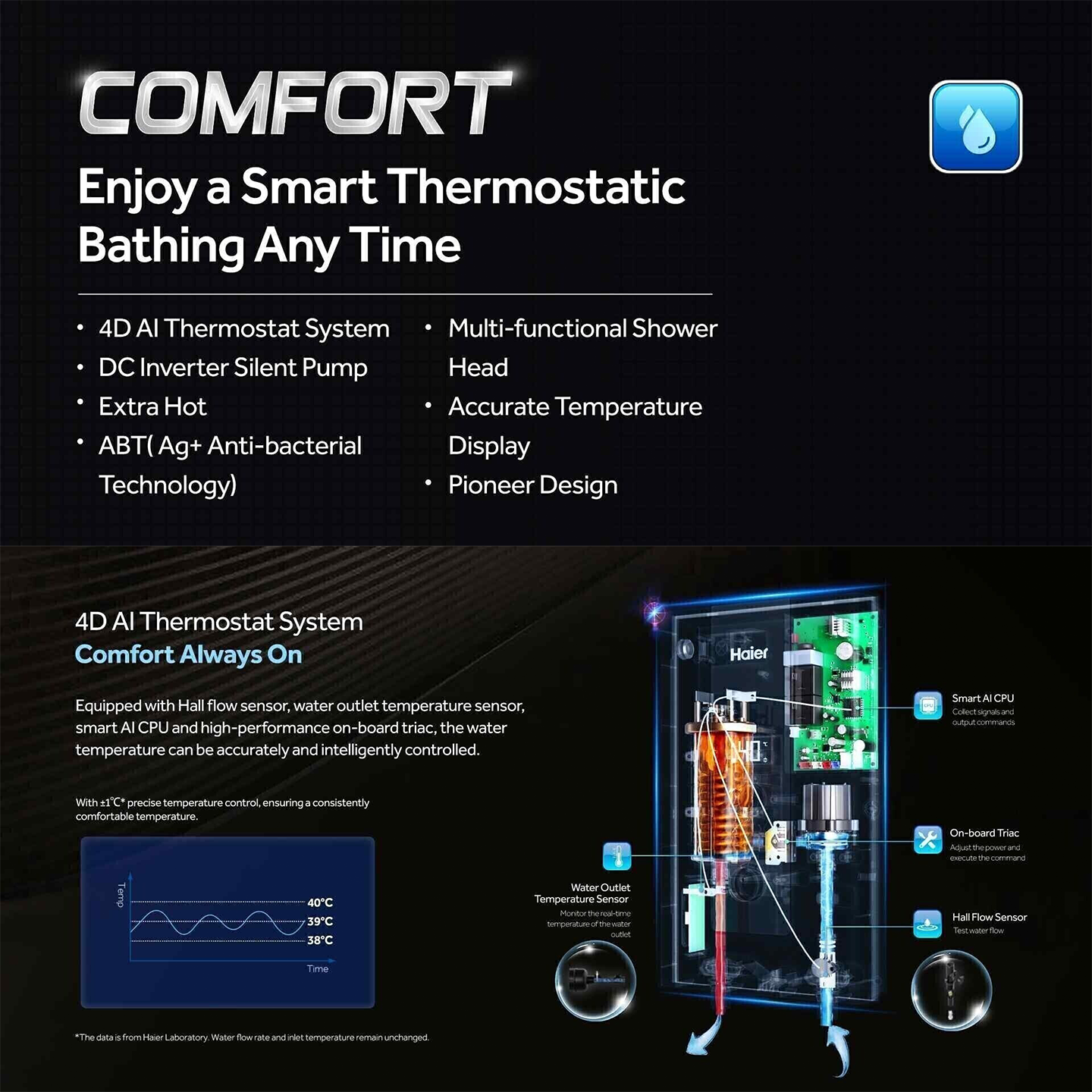 Buy Haier 4.2kW Rain Shower Heater (EI42E-KP3B-RS). Features digital temp display & rain shower. 2 Years General + 5 Years Pump Warranty. Shop now.