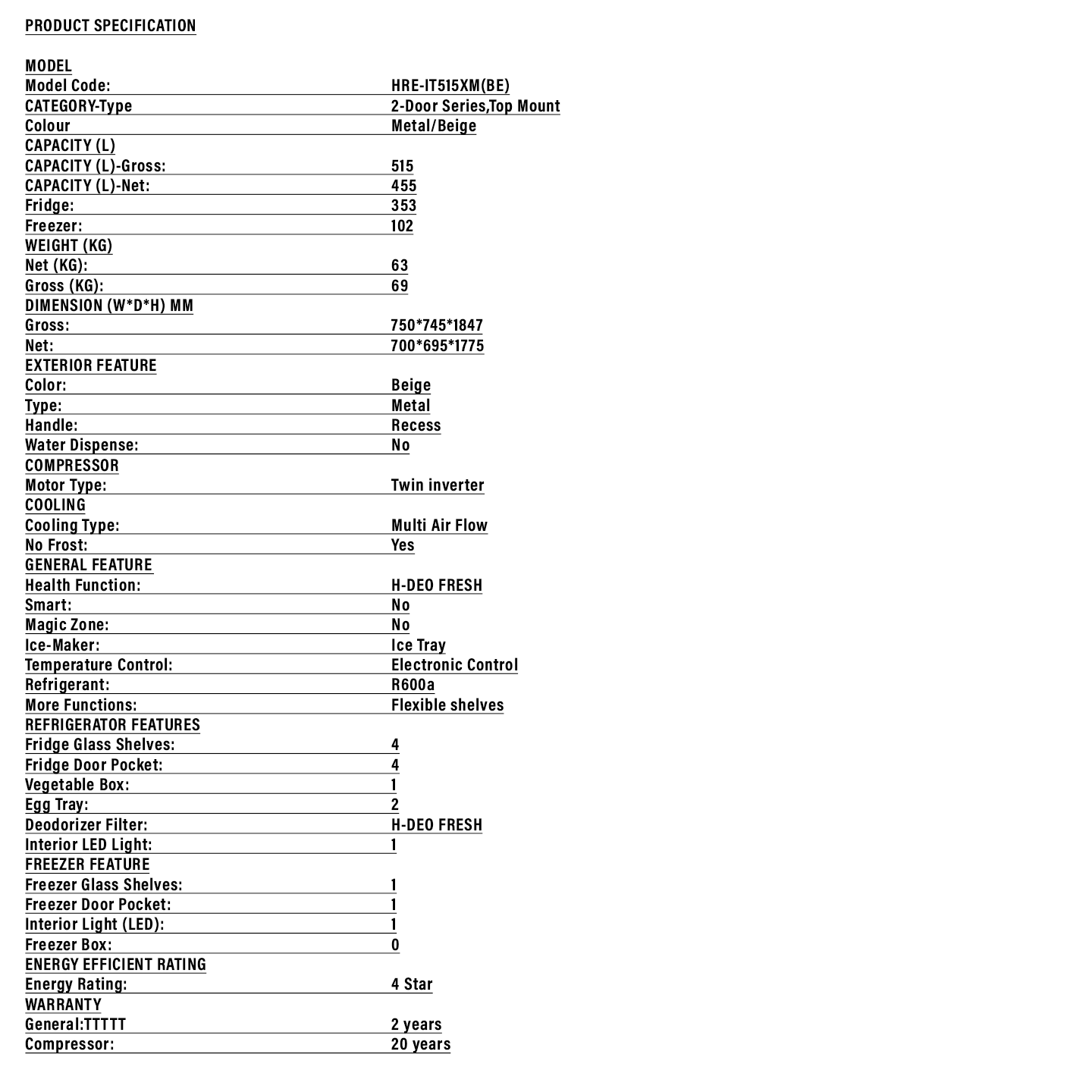 Buy Haier 515L Twin Inverter Fridge (HRF-IT515XM). Features large capacity & humidity control. 2 Years General + 20 Years Compressor Warranty. Shop now.