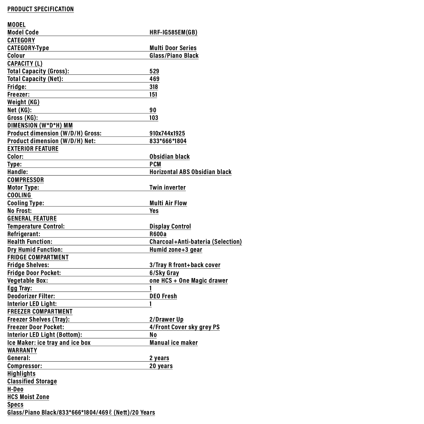 Buy Haier 585L Glass Multi-Door (HRF-IG585EM) Black. Features premium glass & intelligent cooling. 2 Years General + 20 Years Compressor Warranty. Shop now.