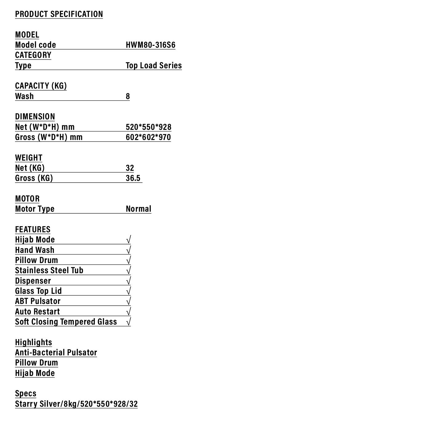 Buy Haier 8kg Top Load Washer (HWM80-316S6). Features gentle pillow drum technology. 2 Years General + 3 Years PCB + 12 Years Motor Warranty. Shop now.