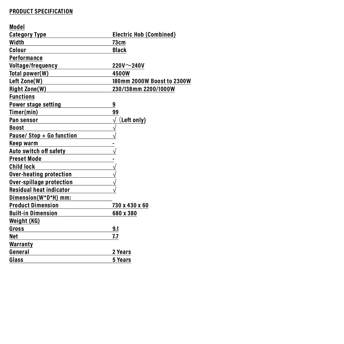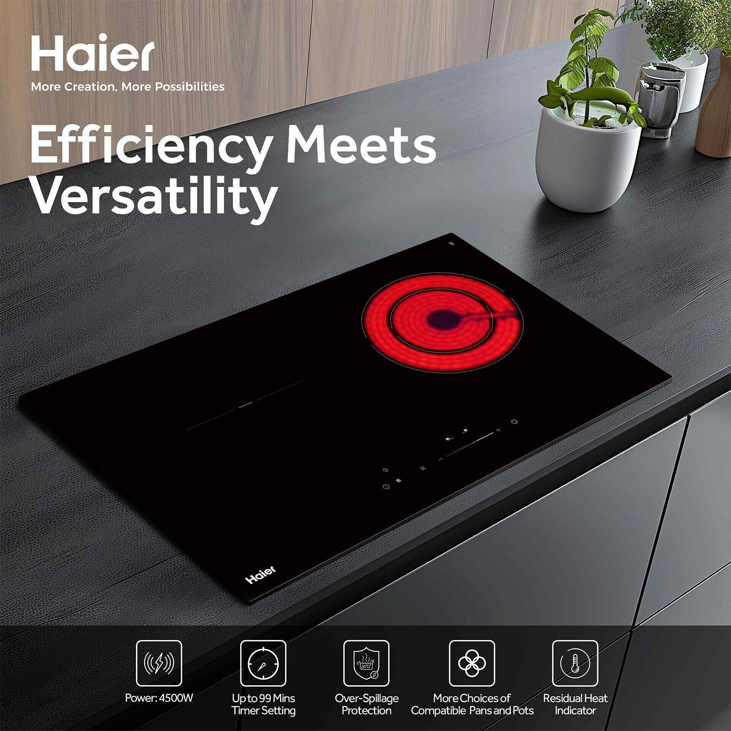 Upgrade your kitchen with the Haier HB-Y672TK1DC Electric Hob. Features 2 radiant cooking zones, 9 power levels, touch control, and a child safety lock. Shop now!