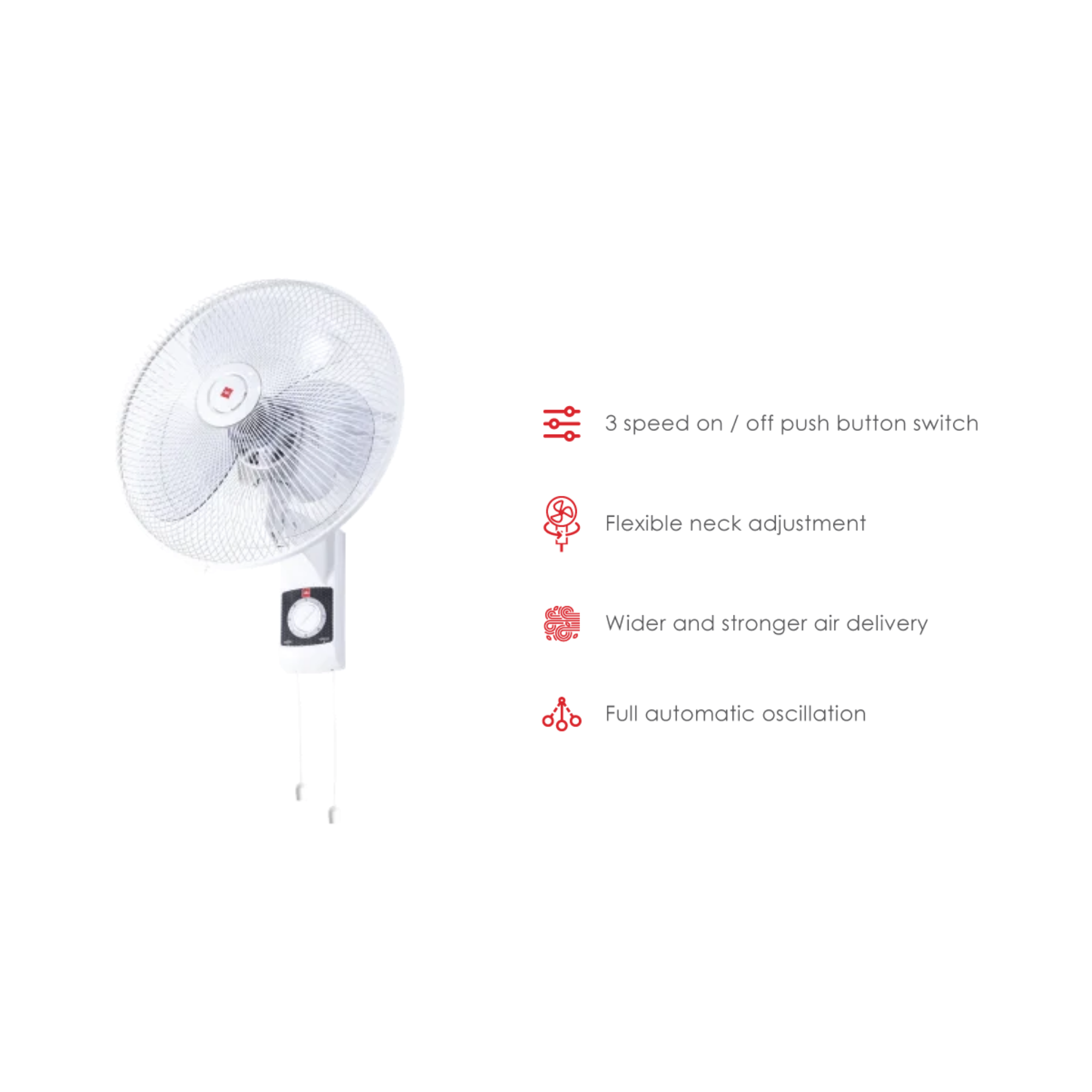 • Size: 18" (45cm) • Type: Industrial Wall Fan • Features: Heavy Duty, High Air Delivery, 3-Speed • Warranty: 1 Year General Warranty