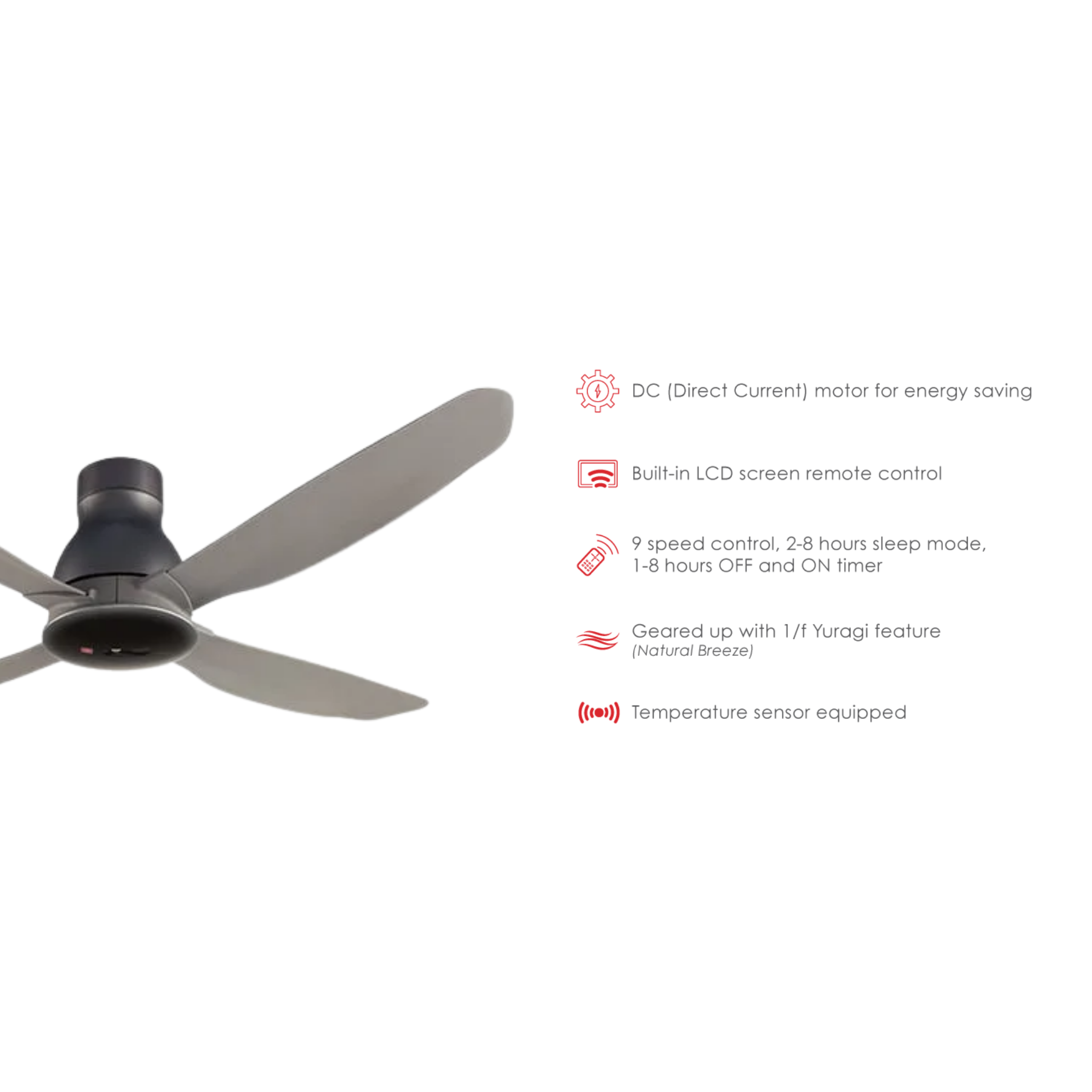 • Size: 56" (140cm) • Type: 4-Blade Sensa 4 (DC Motor) • Features: Temperature Sensor, 1/f Yuragi, 9-Speed, Eco Mode • Warranty: 1 Year General + 5 Years Motor Warranty