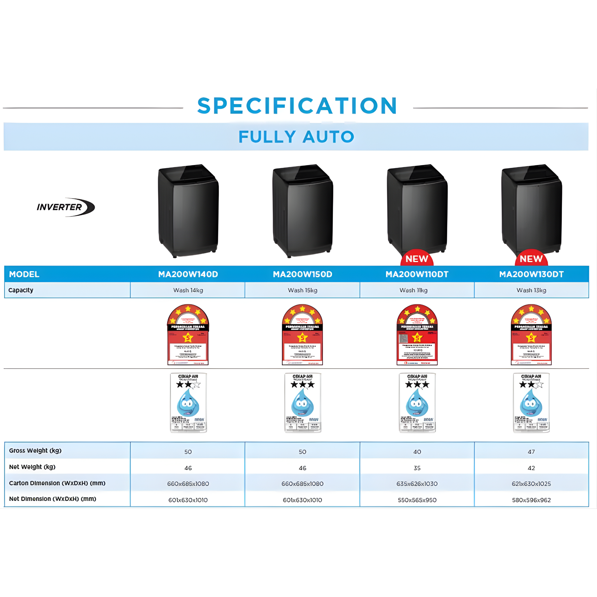 • 13.0kg • Inverter Quattro • Easy-To-Clean Metal Lint Filter • Air Fresh • Self Close Lid • Auto Stop • One-Touch Smart Wash • Child Lock • Auto Clean • Hygiene+ • Deep Clean • Turbo • Lunar Dial