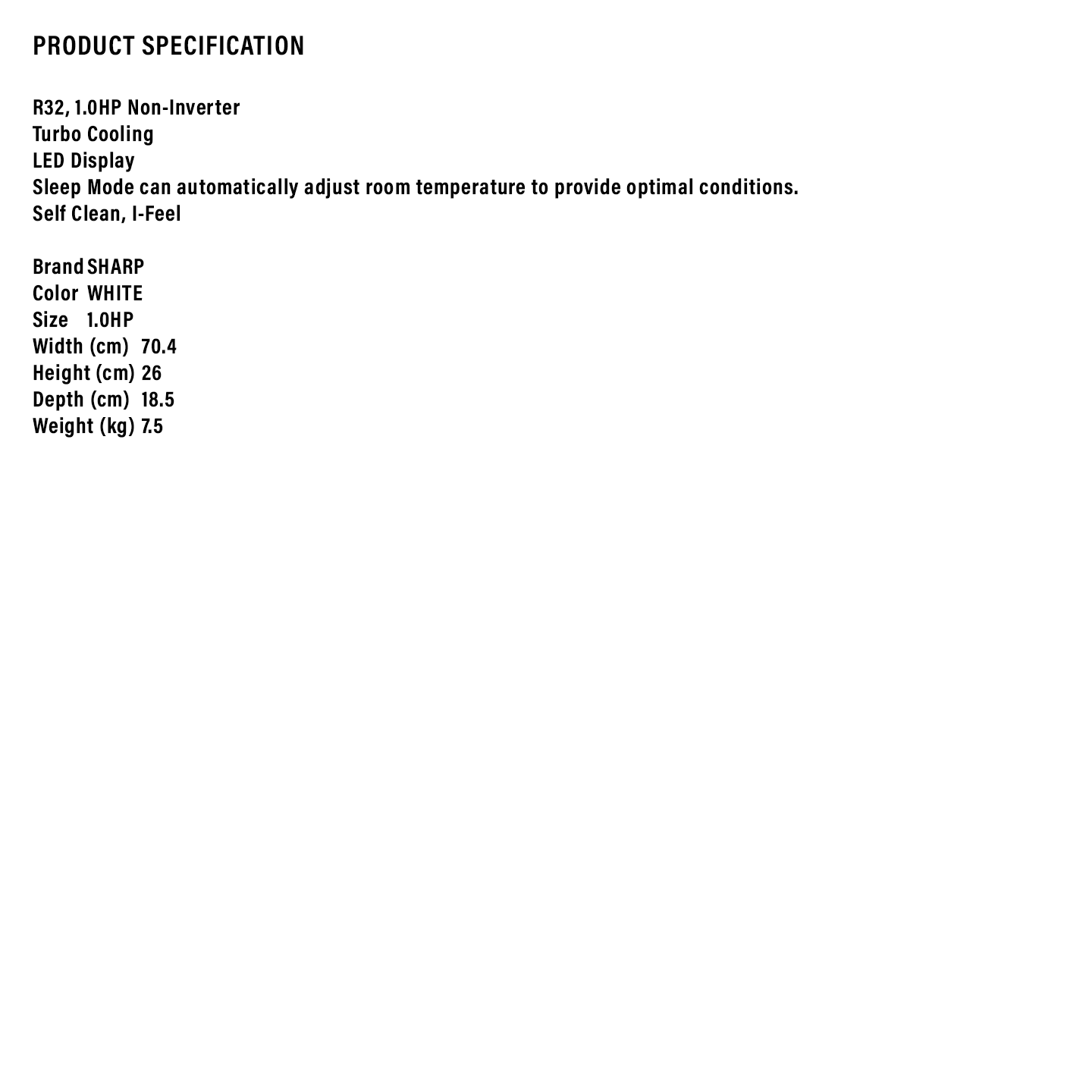 Sharp 1.0HP Standard AC AHA9ZCD. Essential cooling for small spaces. High-quality R32 gas. Reliable Sharp performance. Shop online for best value.