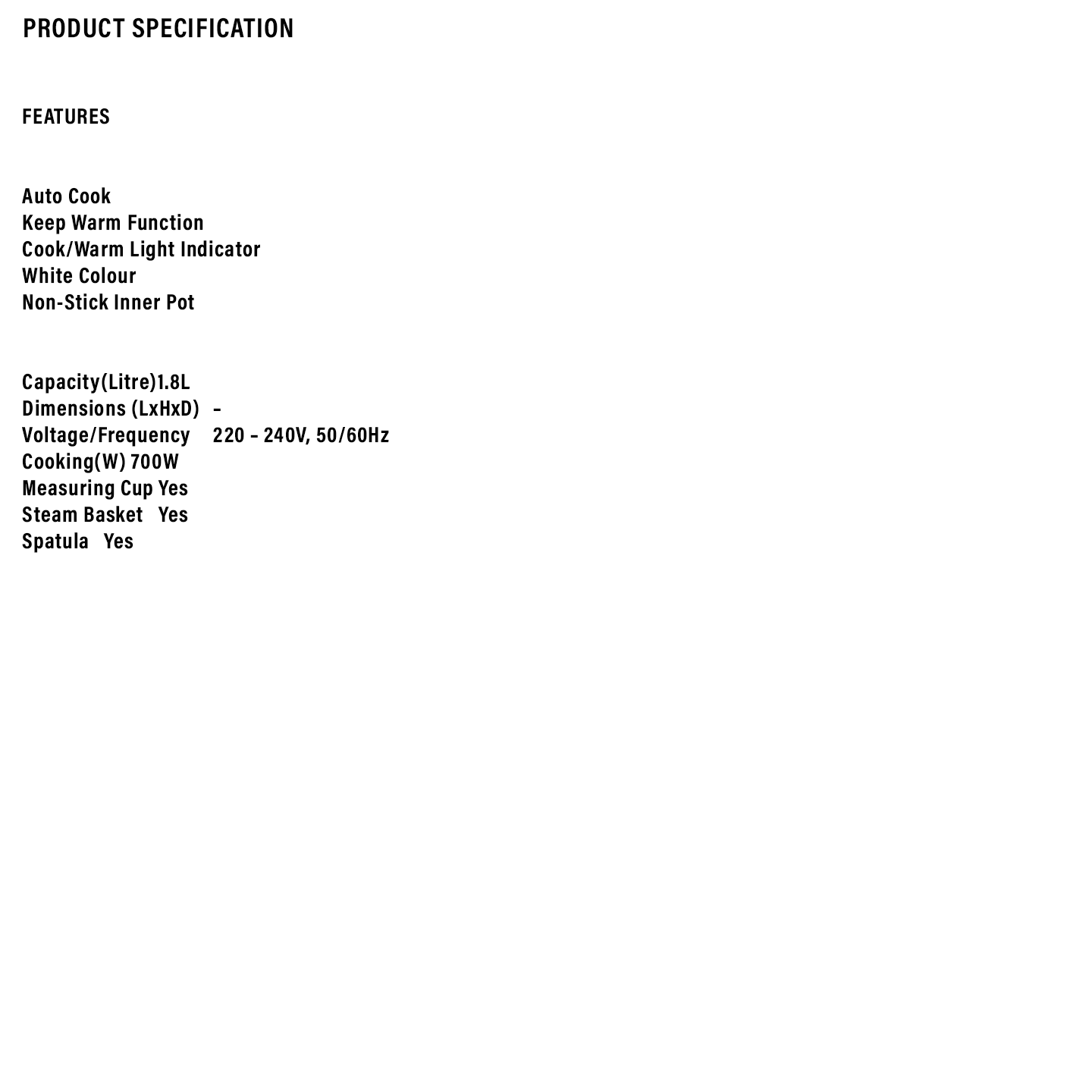 Sharp 1.8L Conventional Rice Cooker (KSH188GWH)
