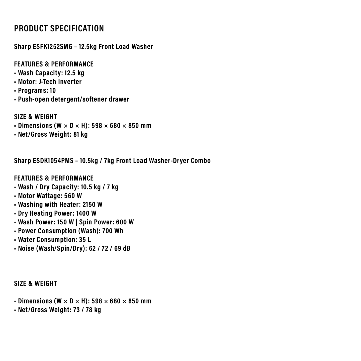 Sharp 12.5kg Washer ESFK1252SMG. Heavy-duty cleaning for big families. J-Tech Inverter efficiency. Steam care technology. Buy now for clean clothes.