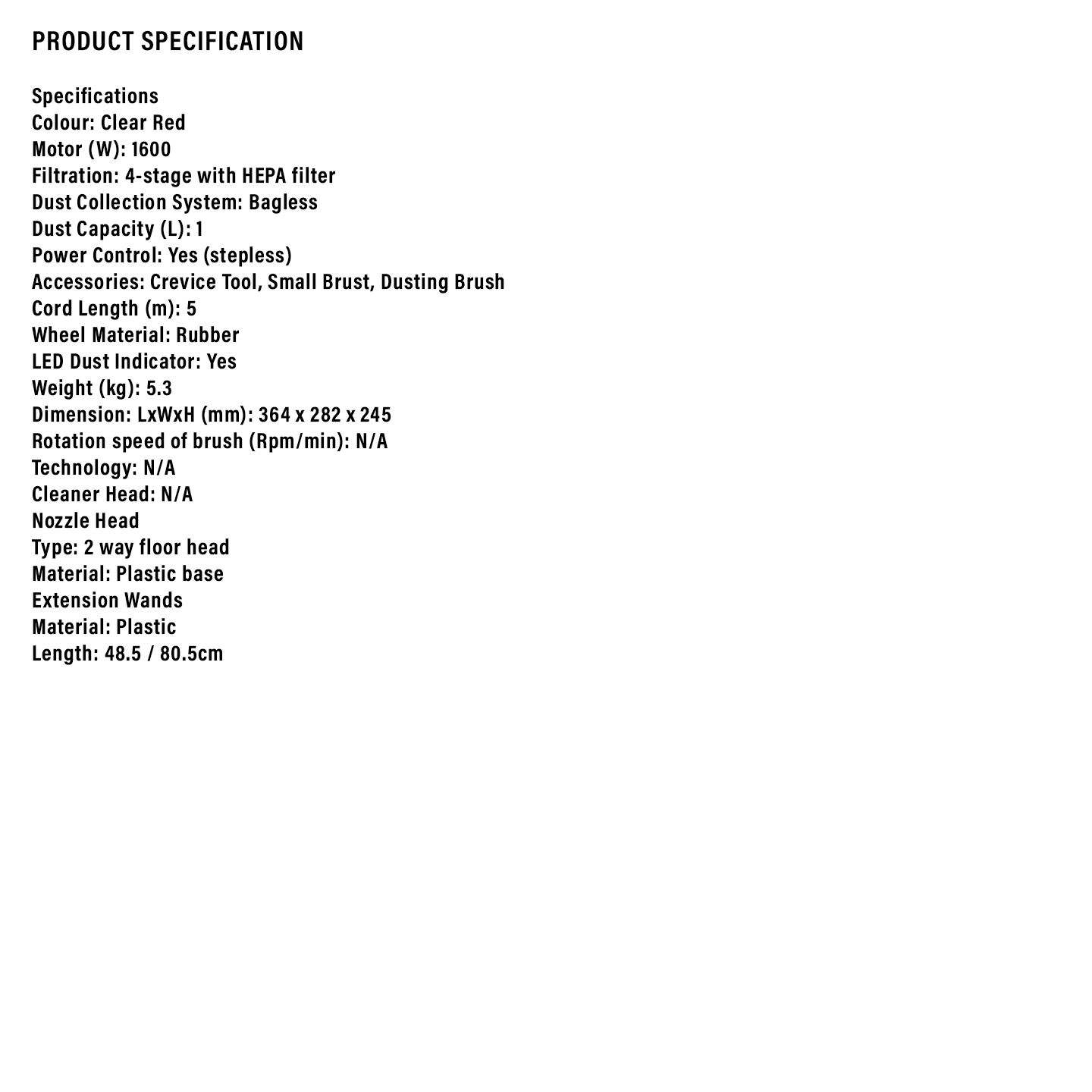 Sharp 1600W Bagless Vacuum ECNS16R. Strong suction in a compact body. HEPA filter for clean air. Reliable performance. Order yours online now.