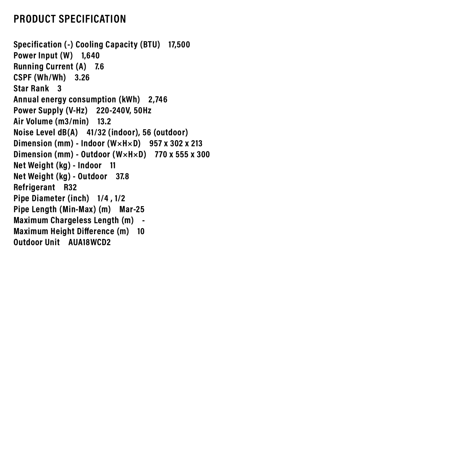 Sharp 2.0HP R32 Standard Air Conditioner (AHA18WCD2)