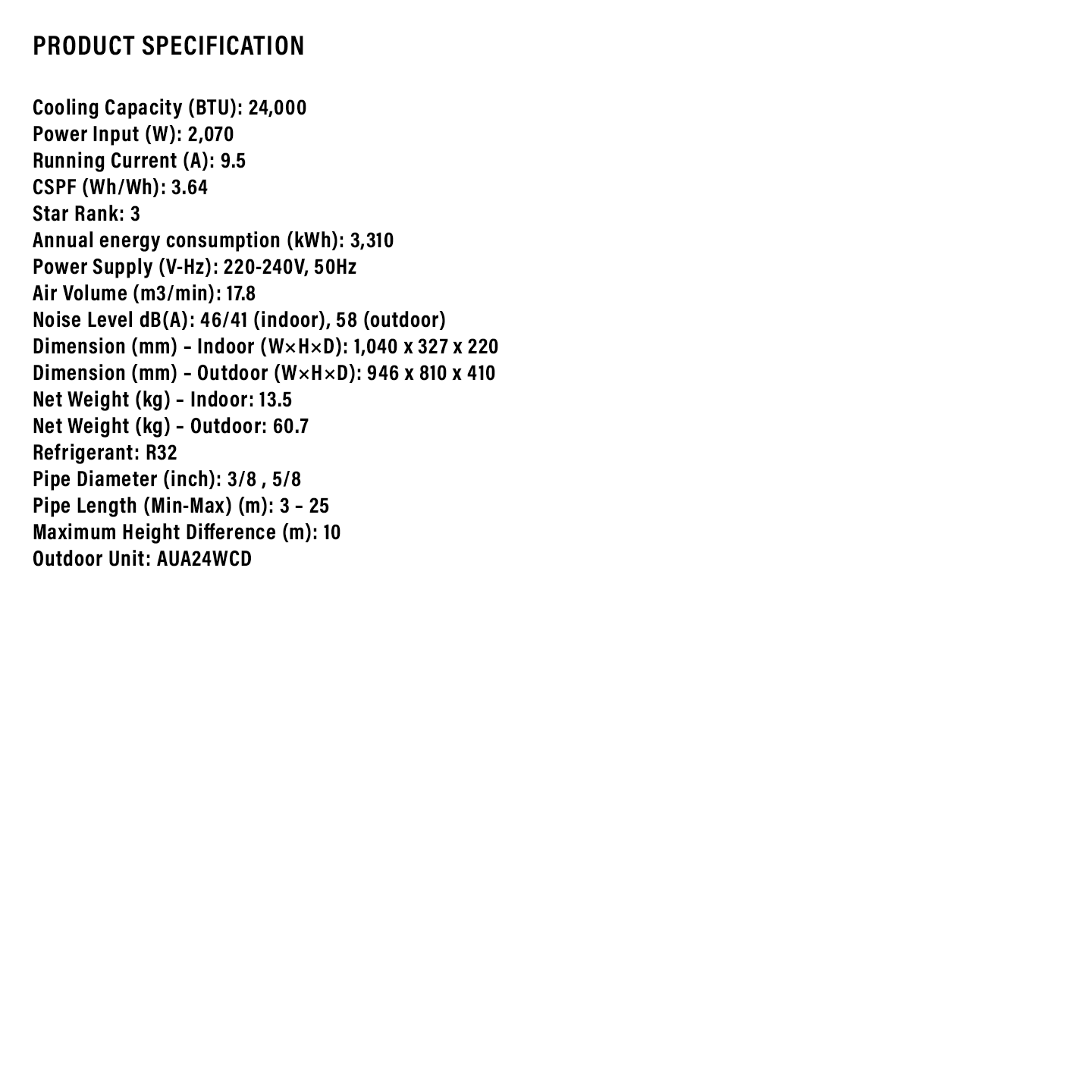 Sharp 2.5HP R32 Standard Air Conditioner (AHA24WCD2)