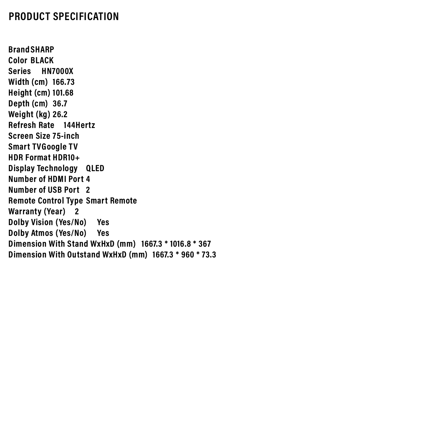Sharp 75" 4K UHD QLED 144Hz Google TV (4TC75HN7000X)