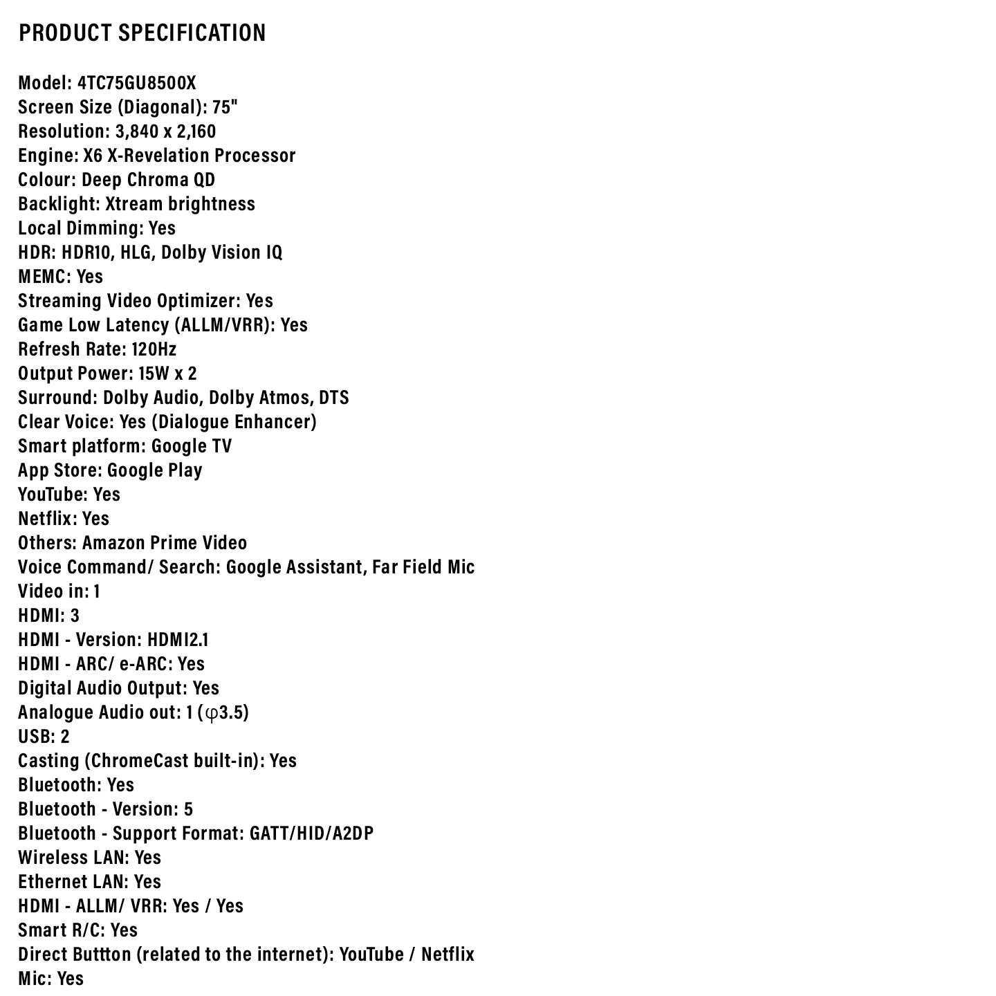 Sharp 75" 4K XLED Google TV 4TC75GU8500X. Revolutionary XLED technology. Immersive 4K UHD. Smart features included. Buy online for home cinema.