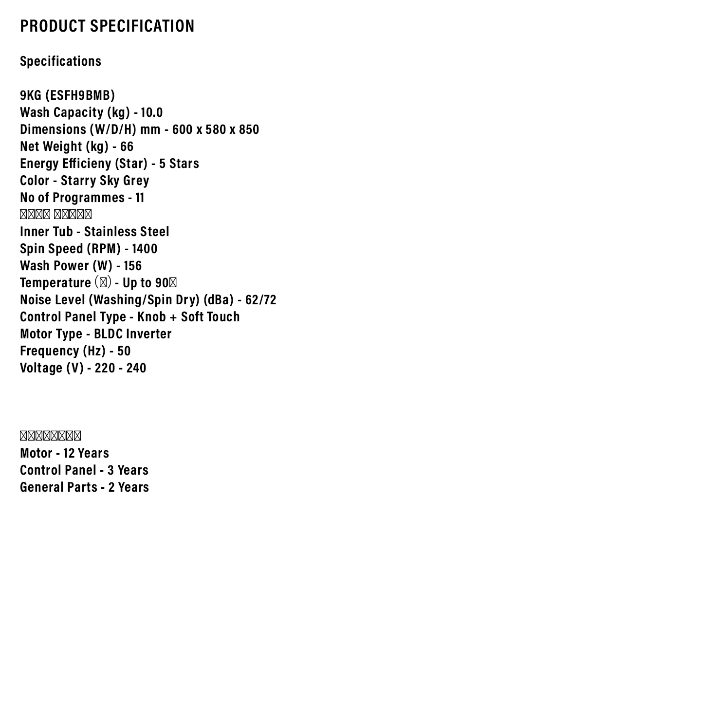 Sharp 9kg Inverter Front Load Washer (ESFH9BMB)