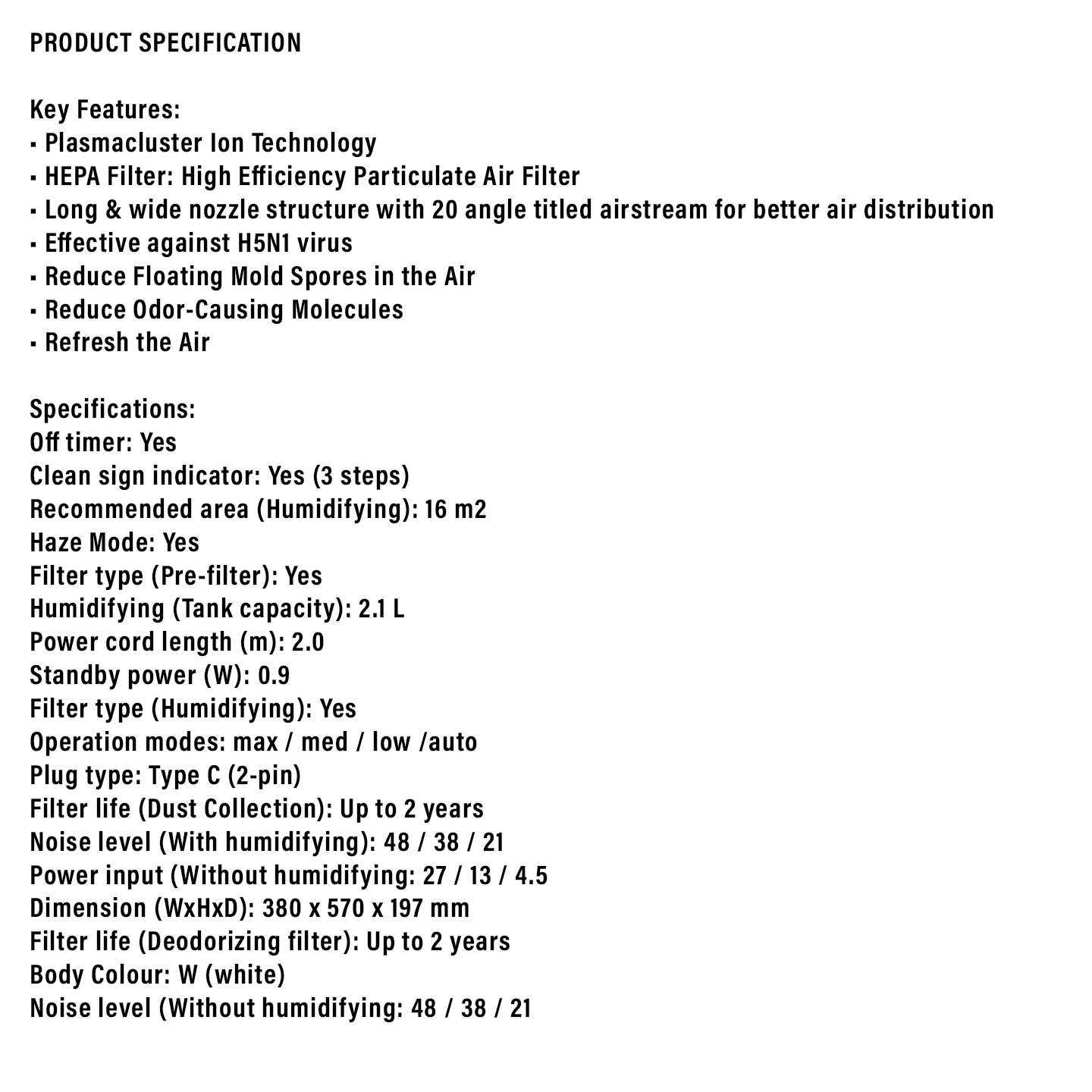 Sharp Humidifying Air Purifier (KCF30LW)